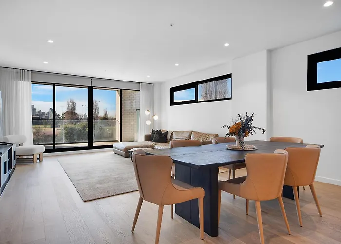 The 2-room The Evelyn Coco Republic By Ready Set Stay Melbourne apartment is located about 4 km from the Australian sports stadium "Melbourne Cricket Ground" and approximately a 25-minute walk from the easy-to-access Docklands Stadium. Situated right near North Port Oval, this apartment offers a terrace where guests can relax and enjoy the garden view.